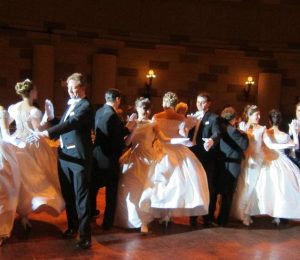 The Quadrille is a dance that was fashionable in late 18th- and 19th-century Europe and its colonies. Performed by four couples in a rectangular formation dance, it is related to American square dancing.