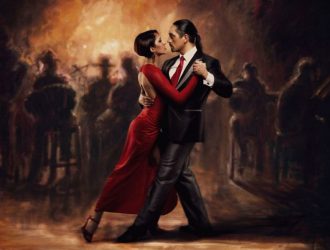 In the late 1800’s, millions of European immigrants arrived on the shores of the Rio de la Plata in South America, in the two port cities of Montevideo, Uruguay and Buenos Aires, Argentina. Most of them were Italian and Spanish and the vast majority were single young men looking to make their fortunes in America. They brought their music: the sweet sounds of the violin, the driving flamenco guitar, the strange mournful wail of the bandoneon – and their dances: the Waltz, the Mazurka, the Polka – and mixed them with the Argentine folk music and dance, with the Cuban habanera, with the African candombe rhythms from the freed slaves’ street parties. With very few women around, many of these young men found themselves looking for excitement in the bordello districts of the burgeoning port cities. The Tango dance arose in these seedy waterfront areas from this turbulent mix, becoming a “mating dance” between barmaids and their customers in shady nightclubs. Shunned by the upper and middle classes in Argentina, it nevertheless became a sleazy fixture of urban nightlife in Buenos Aires. Young men in neighborhood gangs would practice the steps with each other in order to become skilled enough to win the attentions of a woman. A beginner would often dance the follower’s part for six months to a year before being shown how to lead.